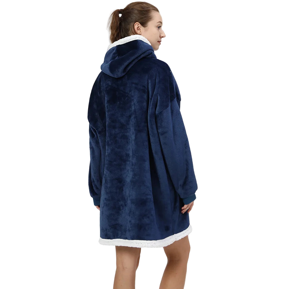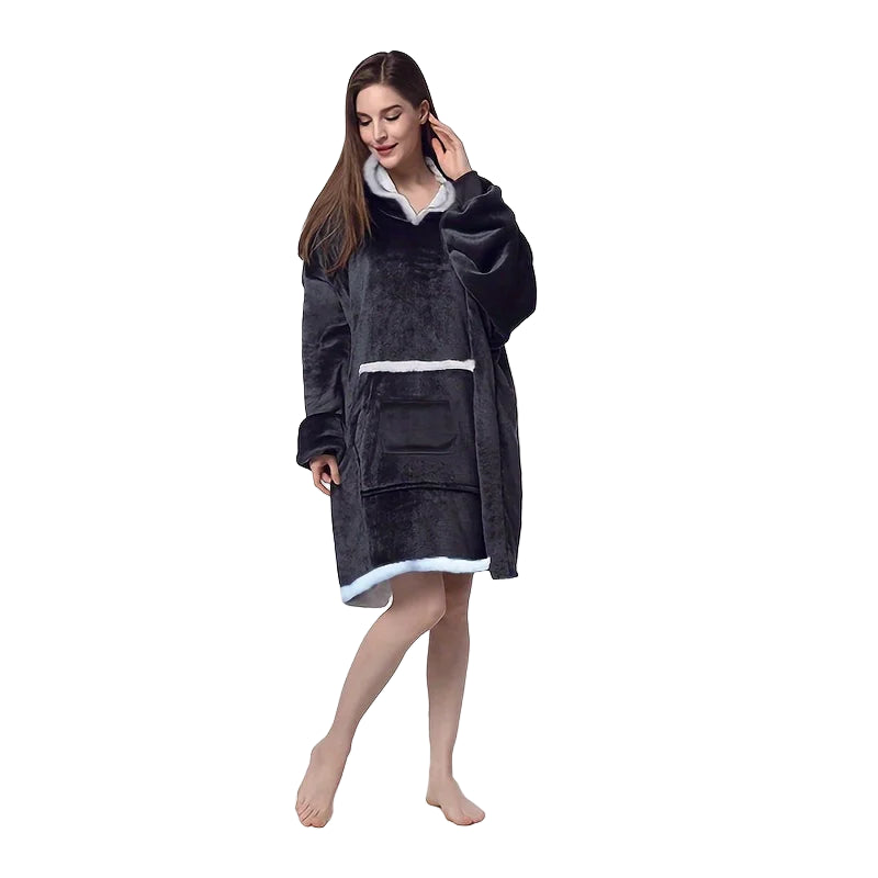 La matière polaire ultra-douce enveloppe comme un câlin permanent — parfait pour les soirées canapé ou les matins tranquilles. La capuche généreuse avec bordure blanche ajoute cette touche cosy, et puis cette poche kangourou XXL sur le devant, elle est vraiment pratique pour garder les mains au chaud ou glisser son petit chaton. La longue coupe couvre bien, vous êtes au chaud de la tête aux genoux. Les finitions contrastées blanches sur les bords apportent un petit côté stylé à ce qui pourrait juste être un vêtement d'intérieur. Franchement, une fois dedans, vous n'aurez plus envie de l'enlever.