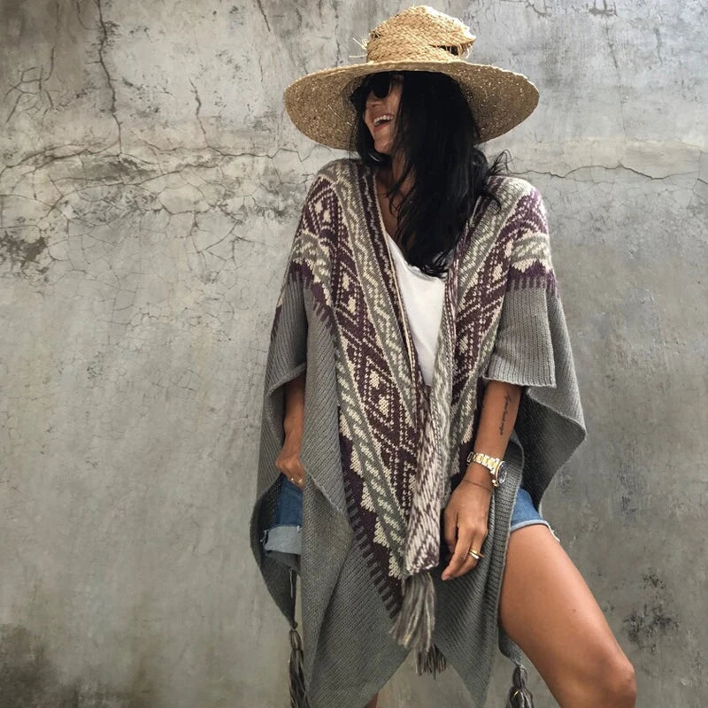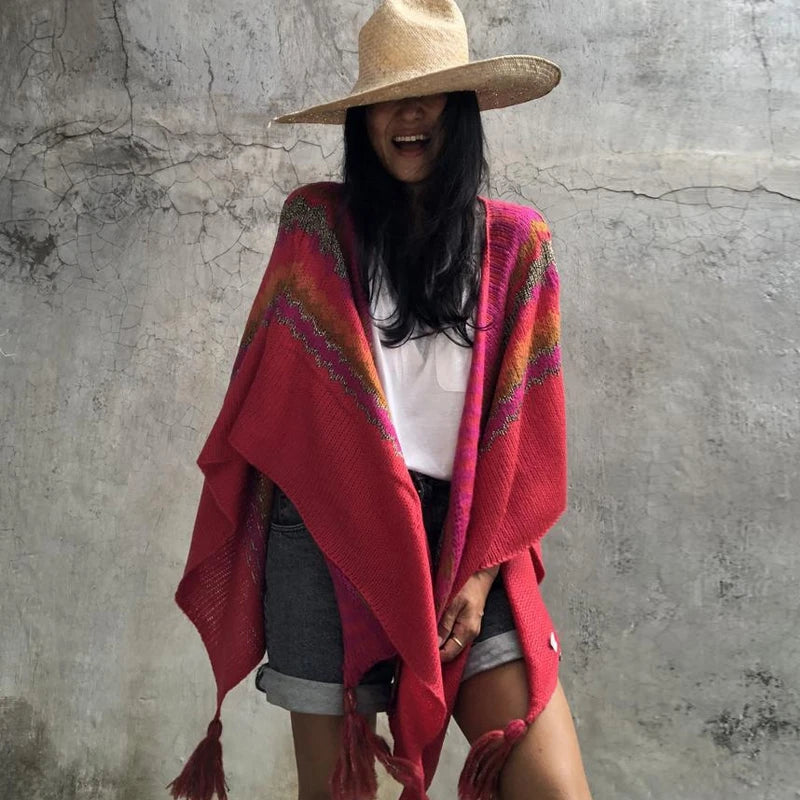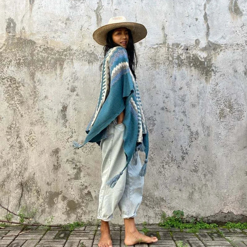 Ce qui rend ce poncho spécial, c'est son esprit bohème assumé - les rayures en zigzag multicolores créent un effet visuel captivant qui attire l'œil sans en faire trop. Le tricot de qualité tombe bien et structure la silhouette, tandis que la coupe sans manches permet de le superposer facilement sur un pull fin ou un tee-shirt à manches longues. Les détails pompons apportent cette petite touche artisanale qu'on adore dans les pièces ethniques. C'est une pièce polyvalente qui se porte aussi bien avec un jean déchiré et des baskets pour un look décontracté, qu'avec une jupe longue et des bottines pour quelque chose de plus travaillé. L'avantage avec la coupe ample, c'est qu'elle s'adapte à toutes les morphologies.